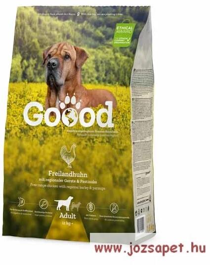 Goood Adult Free Range Chicken holisztikus szuperprémium kutyatáp csirkével 10kg Egészséges, szabad tartású csirke közepes és nagy kutyáknak Szabad tartású csirkéinknek van helyük futni és kapirgálni, és csak természetes takarmányhoz jutnak. A zsenge csirke természetesen tele van fehérjével, vassal és cinkkel. Regionális termesztésű árpa és paszternák. A kiváló minő