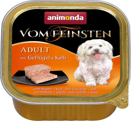 3.3kg Az Animonda Vom Feinsten Adult (szárnyas + borjú) egy teljes értékű alutálkás eledel felnőtt kutyáknak.