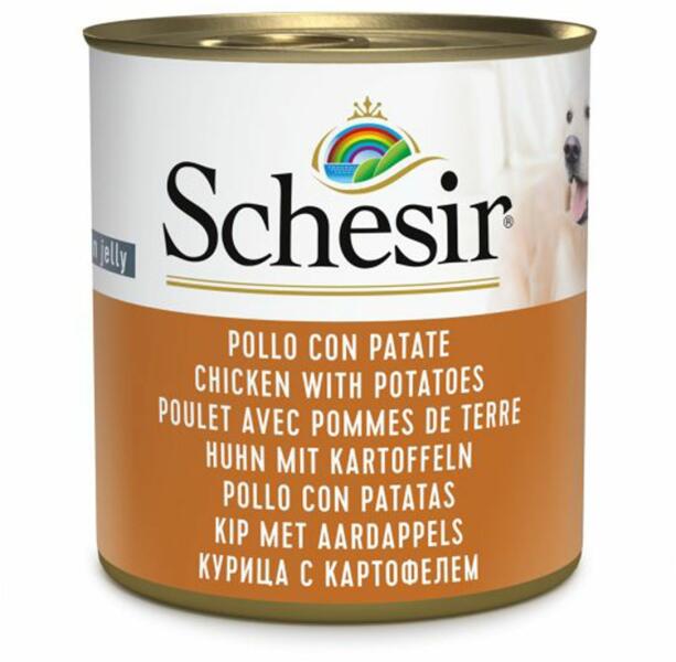 Schesir természetes konzerv csirkeeledel burgonyával minden kutyafajta számára. friss, könnyen emészthető csirkéből sárgarépával, mely védi a gyomrot, segít kitisztítani a beleket, méregteleníteni a testet, valamint jótékony hatást gyakorol a bőrre a rizs olyan szénhidrátforrás, mely jól emészthető és nem terheli meg az emésztőcsatornát valódi gyümölcsdarabokkal a