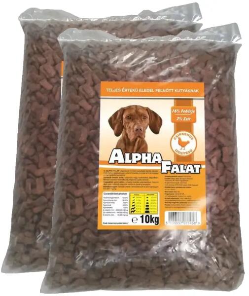 Alpha Falat Csirkés 10kg Teljes értékű száraz kutyaeledel normál aktivitású felnőtt kutyák részére csirke ízesítéssel. Az Alpha Falat etetésével a garantált minőségű nyersanyagok alkalmazásának köszönhetően kutyája egy kiválóan emészthető kellemes ízű szívesen fogyasztott táplálékhoz jut.