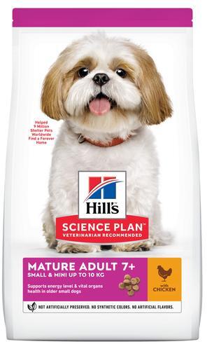 A Hill's Science Plan Mature Adult 7+ Small & Mini száraz kutyatáp egy teljes értékű táp nagyon kistestméretű kutyák részére 7 éves kortól. Alkalmazási javaslatok:- Kis testú és törpe fajtájú szenior korú kutyáknak 11 éves kor felett. Nem ajánlott:- Macskáknak. - Kölyökkutyáknak. - Vemhes és szoptatós szukáknak. Vemhesség és szoptatás idején a szukáknak Scien