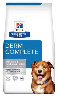 Diétás száraz eledel felnőtt kutyáknak, teljes értékű eledelként alkalmas környezeti és táplálékallergiák esetén, esszenciális zsírsavak a bőr barrierjének támogatására, jóízű. A Hill's Prescription Diet Canine Derm Complete kifejezetten valamilyen környezeti tényező vagy táplálék kiváltotta allergiában szenvedő felnőtt kutyák számára került kifejlesztésre.