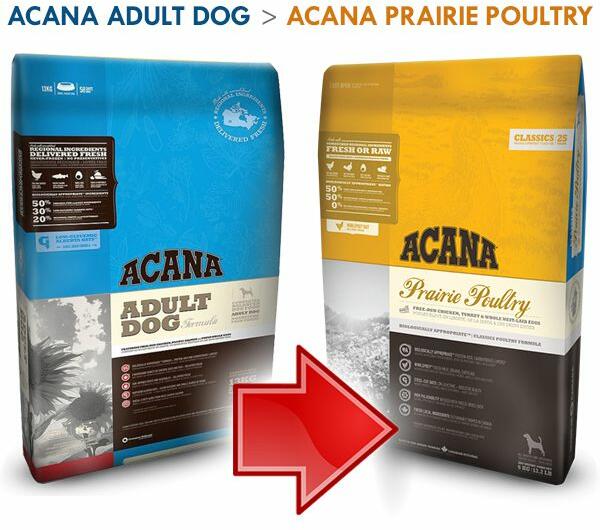 Az ACANA Prairie Poultry egy teljes értékű és biológiai szempontból kiegyensúlyozott táp csirkehússal minden kutyának fajtól és kortól függetlenül. A táp nagy mennyiségű friss és nyers húst tartalmaz, valamint napon érlelt gyümölcsöt és zöldséget. A csirke- és pulykahús szabadtartásból, a tojás pedig tojófészekből származik. Ez a táp nem tartalmaz magas glikém