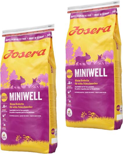 Josera MiniWell Szuper prémium kutyatáp Kor: Felnőtt rózsákKözepes Nagy ÓriásSzemcseméret:tényleges méret rtényleges méret GLUTÉNMENTES FORMULA KISTESTŰ ÉS MINIATŰR FAJTÁJÚ FELNŐTT KUTYÁK SZÁMÁRA RENDKÍVÜL ÍZLETES, ROSSZ ÉTVÁGYÚ KUTYÁKNAK IS AJÁNLOTT Josera MiniWell KIS PELLET NAGY ADAG HÚSSAL AZ IGAZI ÍNYENCEKNEK A különleges, könnyen emészthető és rendkív