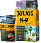 JULIUS K-9 Grain Free Utility Dog Hypoallergen Puppy Junior Bárány gyógynövény 3kg +Ajándék Grain Free Utility Dog Hypoallergen Adult Lazac spenót 340g