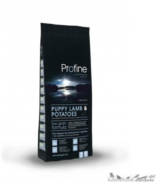 A Profine Puppy Lamb & Potatoes egy teljes értékű bárányos száraztáp kölyök kutyák számára. Kiegyensúlyozott fehérje (27%) és zsírtartalom (19%). Hipoallergén összetételű eledel, így ideális lehet érzékeny gyomrú kutyusoknak is. Ínycsiklandó bárányos-burgonyás ízkombináció. - A bárányhús különö sen jó minőségű fehérjékben gazdag hús, ami szinte az