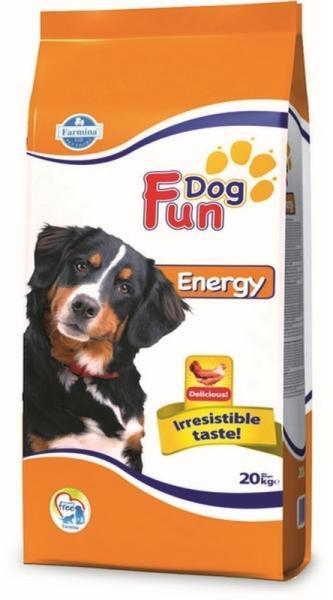 FUN DOG ENERGY Teljes értékű, kiegyensúlyozott eledel felnőtt kutyák részére. A Fun Dog Energy egy teljes értékű eledel magas fizikai aktivitású felnőtt kutyák részére. Teljes mértékben megfelel a munka- és versenykutyák, vemhes és szoptató szuka, valamint erős igénybevételű kutyák minden fontos táplálkozási igényének. Kiváló minőségű összetevői az eledelt k