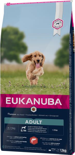 Eukanuba Adult Small&Medium Salmon & Barley kutyatáp LEGFONTOSABB ELŐNYÖK Az egészséges emésztést előmozdító répapép és (FOS) prebiotikum A természetes omega 6 és 3 források támogatják az egészséges bőrt és fényes szőrzetet Az L-karnitin segít a testsúly kezelésében Lazacban gazdag, amely természetes forrása a proteinnek, így támogatja a sovány izomzat megt