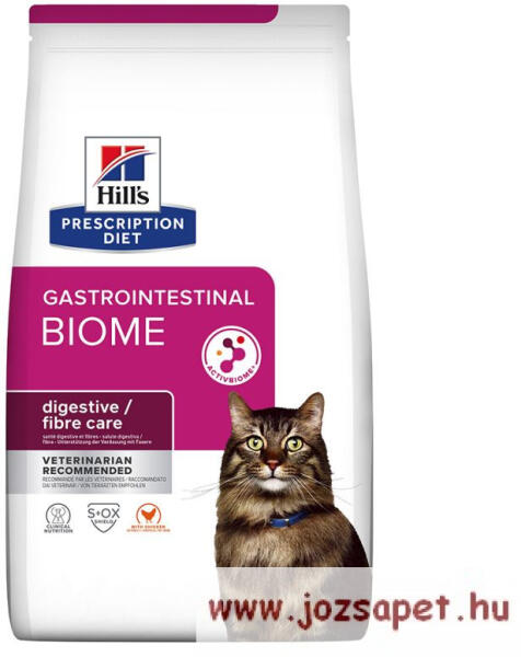 Hill's Prescription Diet Feline Gastrointestinal Biome 3kg Speciálisan olyan felnőtt macskáknak, melyek emésztési gondokkal küzdenek. Az eledelt a speciálisan kifejlesztett, innovatív ActivBiome+ technológiával állítják elő, specifikus rostokat tartalmaz, melyek hozzájárulhatnak a macskája beleiben lévő mikroorganizmusok egészségéhez, s elősegíthetik a rendszeres székletü