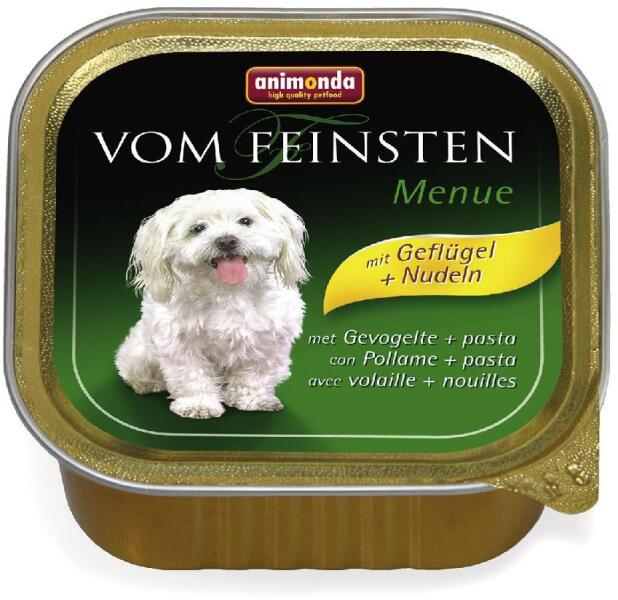 Teljesértékű alutálkás eledel felnõtt kutyák számára baromfihússal és tésztával.
