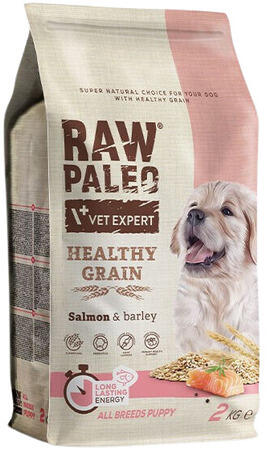 2kg A Raw Paleo Healthy Grain Puppy Salmon egy teljes értékű és kiegyensúlyozott szárazeledel növekvő kutyák számára elválasztástól 12 hónapos korig. Az eledel alapja a kiváló minőségű szárított lazachús, könnyen emészthető halliszttel dúsítva. A két különböző fehérjeforrás használata az esszenciális aminosavak jobb egyensúlyát eredményezi a növekvő kutya