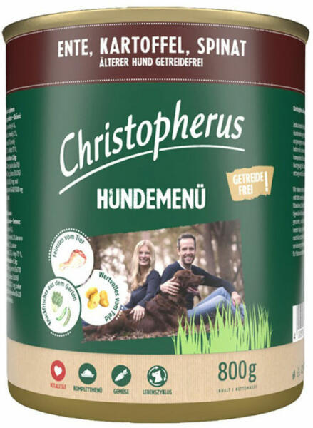 Christopherus Dog Konzerv Menü Senior Kacsa, Burgonya, Spenót 800g - Nedves Eledel Idősödő Kutyáknak A Christopherus Dog Konzerv Menü Senior Kacsa, Burgonya, Spenót egy teljes értékű nedves eledel idősödő kutyáknak , amely kifejezetten a felnőtt és idős kutyák táplálkozási igényeihez van igazítva. Kiváló minőségű kacsa , burgonya és spenót összetevőkkel segíti kut