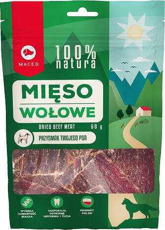 A Beefmeat egy 100%-ban természetes finomság, szárított marhahús-nyelőcsődarabok formájában. Nem tartalmaz mesterséges aromákat, tartósítószereket vagy színezéket. Állaga és természetes, húsos aromája ellenállhatatlanná teszi minden kutya számára. A darabok fehérjében, fehérjékben és ásványi anyagokban gazdagok, így ideális jutalomfalat kutyája számára, és a n