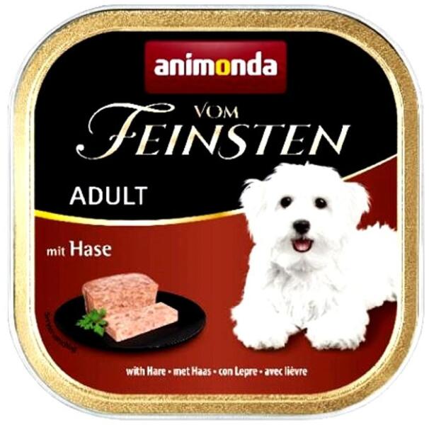 Animonda Vom Feinsten Adult Vadnyúl 6x150g – Felnőtt kutyáknak prémium konzerv Kiegyensúlyo zott és ízletes táplálkozás felnőtt kutyák számára Az Animonda Vom Feinsten Adult Vadnyúl konzerv egy prémium étel, amely az 1-6 éves felnőtt kutyák igényeihez lett tervezve. A 8% mezei nyúl hús különleges ízélményt biztosít, miközben minden szükséges tápanyagot tartalmaz