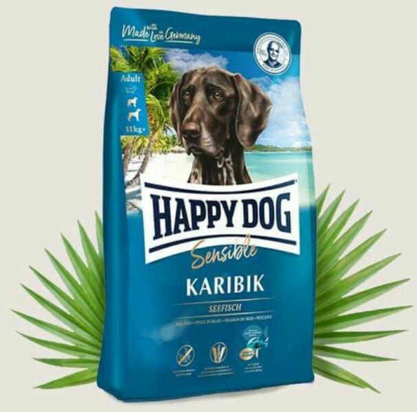 A Happy Dog Supreme Karibik egy ízletes, teljes értékű gabonamentes szárazeledel felnőtt kutyák számára. Ideális eleség érzékeny kutyusoknak. Egyfajta állati fehérjeforrása a fenntartható halászatból származó tengeri hallal. Ideális eledel érzékeny, vagy táplálék-intoleranciával küzdő kutyusok számára. Igazi ínyencfalat, amely egyedi nyersanyagokból, a karibi kony