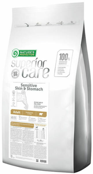 A Nature’s Protection Superior Care Adult Small Sensitive Skin and Stomach további jellemzői: 1 - 10 kg közötti felnőtt kutyák részére fő fehérjeforrása a kiváló minőségű skót bárányhús, mely könnyen emészthető és hipoallergén 100% teljes és kiegyensúlyozott táplálkozás, hogy a kutya optimális állapotban legyen. Csökkentheti az allergiás tüneteket: A fő fehér