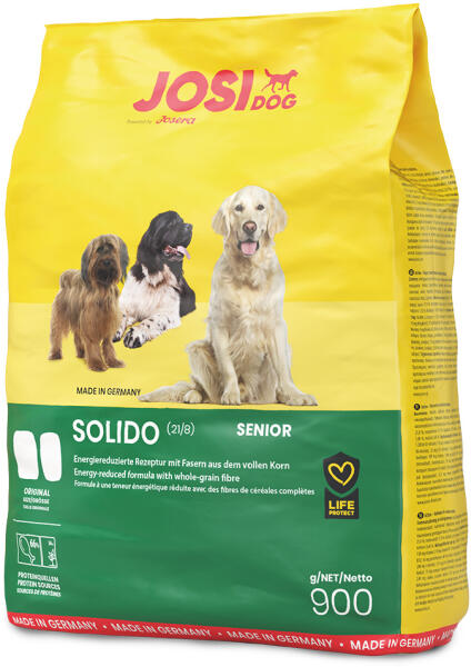 A zooplus. hu kínálatából: A JosiDog Solido Senior könnyű és kiegyensúlyozott, teljes értékű eledel kevésbé aktív, idősebb vagy túlsúlyos kutyák számára. Energiatartalma csökkentett a nemkívánatos túlsúly ellensúlyozására, és az ideális testsúly fenntartásának támogatására. Az eledelben található szárnyas könnyen emészthető és jól hasznosítható fehérj