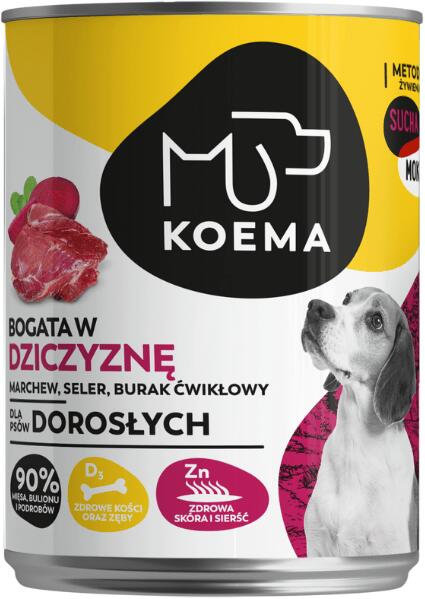 Koema nedves kutyaeledel - 90% hús, belsőségek és húsleves 400g x 12 A Koema rendkívül tápláló nedves kutyatáp minden fajta számára, összetételében 90%-ban húst, belsőségeket és húslevest tartalmaz. Ennek eredményeképpen biztosítja kedvence számára az összes szükséges tápanyagot, amelynek meg kell jelennie a napi étrendjében. A 90%-ban hús alapanyagokból előáll