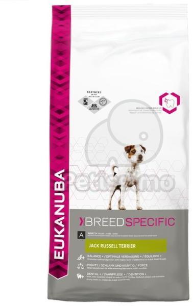 Optimálisan a Jack Russell terrierek szükségleteihez szabott száraz táp sok prebiotikummal, L-karnitinnel, fogak számára hasznos ásványokkal és telítetlen zsírsavakkal, a maximális vitalitásért. Az Eukanuba 10 éves megfigyelései azt mutatják, hogy a kutyák átlagon felüli magas életkort is elérhetnek: Hűséges társa rászolgál arra, hogy az átlagnál hosszabb élet előny