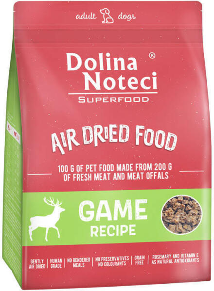 A Dolina Noteci SUPERFOOD vadeledel teljes értékű szárazeledel minden fajta felnőtt kutyának, amely fedezi a napi szükségletet minden tápanyagból. A változatos és értékes összetétel 80%-ban friss vadhúst és állati eredetű termékeket tartalmaz vadból, marhából, csirkéből és sertésből, amelyek nagyon jól emészthető, minden esszenciális aminosavban gazdag fehérjeforr