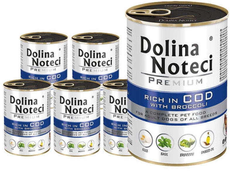 Dolina Noteci Prémium tőkehal brokkolival 400g - Leírás Teljes értékű eledel tőkehallal és brokkolival minden fajta felnőtt kutyának. A tőkehalból származó hús és nyersanyagok különösen lizin és arginin, valamint n-3 többszörösen telítetlen zsírsavak forrása. A tőkehalból származó nyersanyagokban található zsír EPA-val és DHA-val egészíti ki a kutya étrendjét