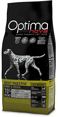 Nyúl És Burgonya. Teljes Értékű Gabonamentes Eledel Érzékeny Emésztésű Felnőtt Kutyák Számára 10 Hónapos Kor Felett. Az Optimanova Adult Digestive Rabbit & Potato egy ízletes, teljes értékű nyulas burgonyás száraztáp felnőtt kutyák számára. Kifejezetten emésztést segítő összetételű eledel érzékeny gyomrú kutyáknak. Kiválóan emészthető tápanyagok biztos