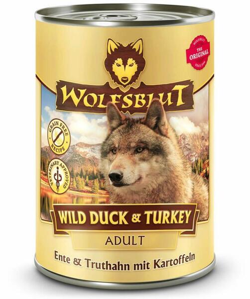 Wolfsblut természetes eledel gabonamentes receptből felnőtt kutyák számára. friss és könnyen emészthető pulyka és kacsa a fő összetevők az eledel természetes vitaminokat tartalmaz tökből, áfonyából és vörösáfonyából nem tartalmaz gabonaféléket, glutént, kukoricát, iparilag előállított cukrot, szóját, ízfokozókat, vegyi festékeket és mesterséges tartósítós