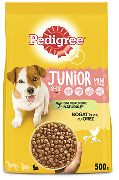 PEDIGREE száraz 500g Csirke & rizs JUNIOR MINI A Pedigree teljes értékű és kiegyensúlyozott száraz kutyaeledel mindennapi fogyasztásra. A Waltham kisállat-táplálkozási kutatóközpont táplálkozástani szakemberei és állatorvosai segítségével kifejlesztett Pedigree Száraz kutyaeledel rendelkezik minden alapvető tápanyaggal, amely támogatja az optimális emésztést, egés