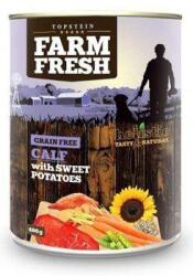 Farm Fresh Dog Borjú édesburgonyával konzerv 800g, A legmagasabb biológiai minőségű hús, amely nem tartalmaz mesterséges tartósítószereket, színezékeket vagy aromákat, illetve géntechnológiával módosított alapanyagokat tartalmazó növényi termékeket. Gabonamentes Összetevők : borjúhús és borjúhús melléktermékek, édesburgonya, sárgarépa, borsó, ásványi anyagok,
