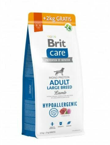 Brit Care Adult Large Breed Lamb & Rice 12+2 kg kutyatáp nagytestű és óriás méretű kutyák számára. Nagy és óriás testű, 25 kg feletti, 2 évesnél idősebb felnőtt kutyák számára kifejlesztett hypoallergén száraztáp. A speciális összetevők elősegítik a nagytestű kutyák emésztési, szív- és ízületi egészségét. A bárányhús és rizs kombinációja biztosítj