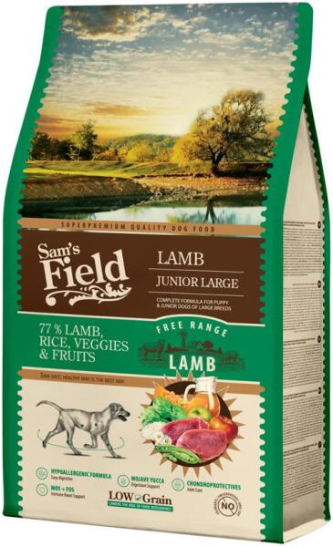 A Sam's Field Junior Low Grain Lamb - Large egy teljes értékű állateledel nagytestű kölyök és fiatal kutyák számára (3 hónapos kortól 30 hónapos korig). Jellemzők : - 77% bárány, rizs, zöldségek és gyümölcsök- Alacsony gabonatartalom: Csökkenti az ételintolerancia kockázatát- HIPOALLERGÉN FORMULA: Könnyű emésztés- MOJAVE YUCCA: Támogatja az emésztést- PORCVÉDŐ: