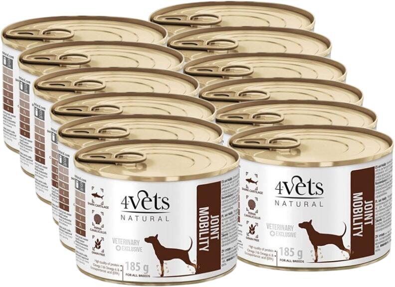 A 4vets Joint Mobility teljes értékű állatorvosi kutyatáp az ízületi és porcízületi gyulladásban szenvedő kutyák számára készült. A megelőzés részeként is ajánlott az ilyen típusú betegségre hajlamos fajtáknál. Megelőzi az elhízást, amely a kutyák csont- és ízületi problémáinak egyik fő oka. Fehérjeforrásként alacsony zsírtartalmú pulykahús és marhahús