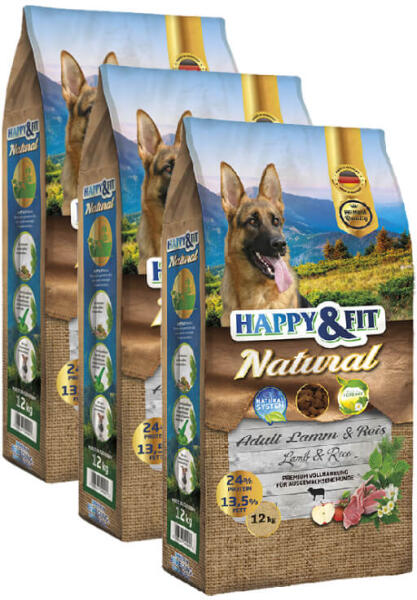 Happy&Fit Natural Adult Lamm&Reis száraz kutyatáp A Happy&Fit Lamm&Reis könnyen emészthető összetevőivel ideális választás az érzékeny kutyáknak. Az ízletes bárány, a szárított cukorrépapép és a nagyon jól emészthető rizs optimális emésztést biztosít. A bárányhús és a rizs kiváló táplálást biztosít minden fajtájú kutyának. A Happy&Fit La