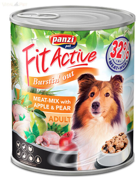 Panzi FitActive Prémium: Ízletes, teljes értékű konzerv kutyáknak. Húsmix és gyümölcsök tökéletes kombinációja. Ideális kiegészítő a száraz táplálékhoz. Panzi FitActive Prémium konzerv kutyáknak húsmix-gyümölcskoktél – fedezze fel a kutyája ízlelőbimbóit elvarázsoló, tápláló és egészséges falatokat! Ez a prémium minőségű konzerv egy gondosan összeál