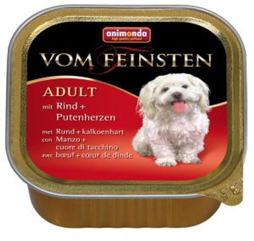 Teljes értékű állateledel felnőtt kutyák számára, marhával és pulykaszívvel. Összetevők: 63% hús és állati melléktermékek (sertés, marha 35%, pulykaszív 8%), alaplé, ásványi anyagok. Analitikai összetevők: fehérje:10,5%, zsír:4,5%, nyersrost:0,4%, nyershamu:2%, nedvességtartalom: 81%.