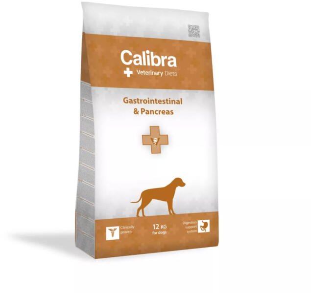 CALIBRA Gastrointestinal and Pancreas - Teljes értékű diétás kutyatáp, állatorvosi gyógytáp 12kg Kiválóan emészthető diétás táp (rizs, lazac, hidrolizált fehérje, szárított tojás) Csökkentett zsír-, magas omega-3 zsírsav tartalom Különleges kezelt élesztőkultúrával, oligoszacharidokkal (FOS, MOS) és jukkával növelt hatékonyság. Emésztési zavar, akut és krónik
