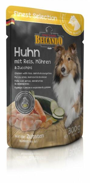 Jellemzők: - Kiváló receptúrák egy etetési méretben csomagolva. - Szaftos, finom hozzávalókkal ízesített, kíméletesen főzött hús, tasakba kiporciózva. - A hidegen sajtolt bogáncsolaj létfontosságú telítetlen zsírsavakat ad hozzá. - A BELCANDO® FINEST SELECTION rendkívüli ízletességének és hasznosíthatóságának köszönhetően kiváló az érzékeny és válogatós