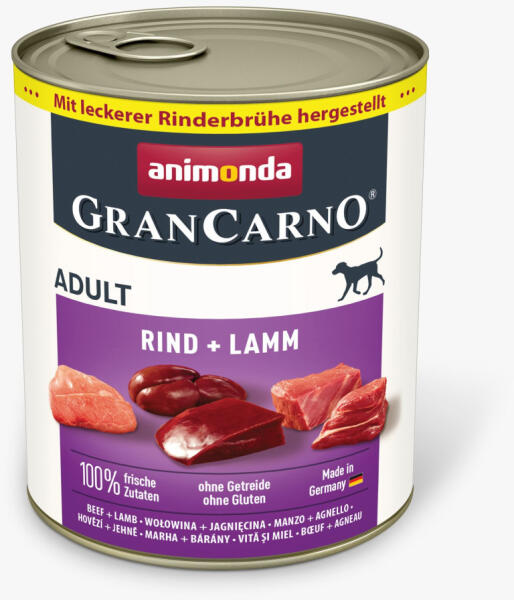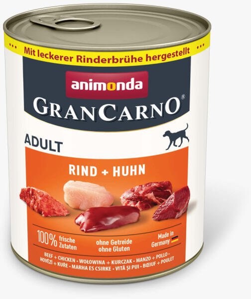 A GranCarno Adult Beef + Chicken 1-6 éves felnőtt kutyák és táplálkozási igényeik számára lett kifejlesztve. Ez biztosítja szőrös barátjának minden létfontosságú tápanyagot, amelyre minden nap szüksége van! Összetétel: 38% marhahús (tüdő, máj, hús, szív, vese, tőgy), 30% csirke (hús, szív, gyomor, máj, torok), 29% marhahúsleves, ásványi anyagok, pórsáfrányola