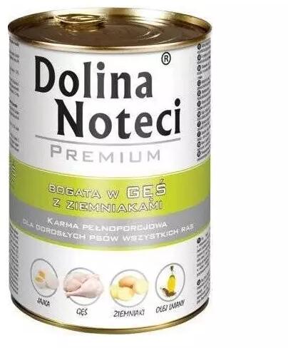Dolina Noteci Prémium liba burgonyával 400g - Leírás Teljes értékű eledel libával és burgonyával minden fajta felnőtt kutyának, különösen értékes forrása a metionin és cisztein aminosavaknak. A libahús zsírja értékes forrása az n-6 többszörösen telítetlen zsírsavaknak. A liba és alapanyagai vas- és szelénforrást is jelentenek - ezek az ásványi anyagok biztosítj
