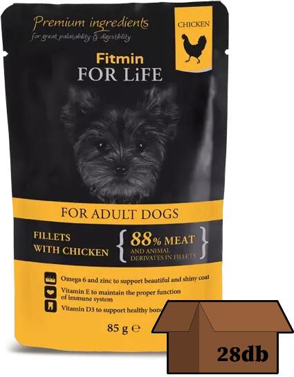 Fitmin Dog For Life Adult Chicken With Ham In Jelly 85g - Termékleírás Teljes értékű eledel felnőtt kutyák számára. Kutya tasak párolt gazdag csirkefilével, sonkával rozmaringos zselében. Összetétel Hús és állati eredetű termékek (88% filében, ebből 40,6% csirke, 4% sonka) Növényi eredetű termékek (0,4% inulin) Olajok és zsírok Ásványi anyagok Cukrok Gyógynö vénye
