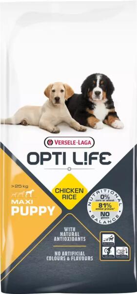 Versele-Laga Opti Life Puppy Maxi csirkével 1kg - Termékleírás Az Opti Life Puppy Maxi egy tökéletesen kiegyensúlyozott, csirke- és rizs alapú táp, amelyet a nagytestű (>25 kg) kölyökkutyák összes táplálkozási igényének kielégítésére fejlesztettek ki. Az eledelben lévő fehérje 81%-a állati eredetű, ami a rizzsel együtt biztosítja a könnyű emésztést és az ür