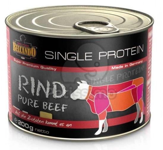 BELCANDO SINGLE PROTEIN szín marhahús konzerv Szuper prémium minőségű táplálék kiegészítő kutyáknak A BELCANDO MIX IT szárazeledellel együtt etetve egy igazán kiegyensúlyozott táplálást biztosít kutyájának. Összetétel:marhahús, -szív, -máj, -tüdő, -vese, -gége (73%); marhahúslé (27%) Összetétel elemzés:fehérje 12,0 %; zsír 6,9 %; nyershamu 2,1 %; nyersrost 0,3