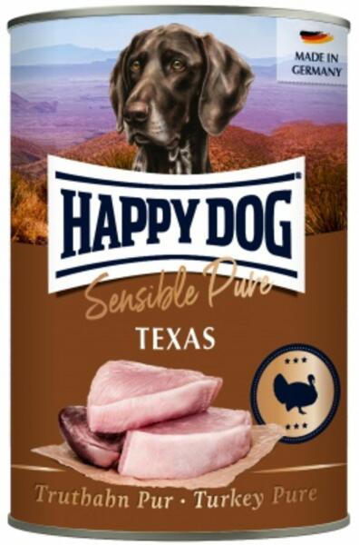 Minimum rendelhető mennyiség: 6 db Happy Dog Texas konzerv- Pulykahús Egyféle fehérje-100% pulyka Eleség intolerancia és érzékeny emésztés esetén is kiváló '-100% Pulyka, kizárólag friss vágású pulykahúsból készül, -szója, növényi adalékok, színezék és tartósítószerek hozzáadása nélkül - egyetlen proteinforrást tartalmaz ezért tökéletes választás ételér