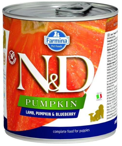 N&D Dog Konzerv Bárány & Áfonya Sütőtökkel Puppy 285gAz N&D Dog Konzerv Bárány & Áfonya Sütőtökkel Puppy egy teljes értékű nedveseledel kölyökkutyák számára, amely a legfinomabb bárányhúst, áfonyát és sütőtököt tartalmaz. Ez a tápláló eledel ideális a növekedésben lévő kutyák számára, akiknek különleges táplálkozási igényeik vannak a m