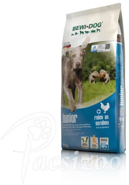 Bewi-Dog Junior 25 kgA BEWI DOG Junior kiegyensúlyozott eledel nagytestű fajták növendék kutyáinak, pl. : németjuhász, retriver, labrador, weimari vagy rottweiler. Értékes összetevőket tartalmaz, ásványi anyag tartalma szabályozza a kontrollált növekedést. Nagytestű fajták számára a 4. hónaptól a növekedési időszak végéig. A Bewi-Dog Junior eledel a mérsékelt fehérj