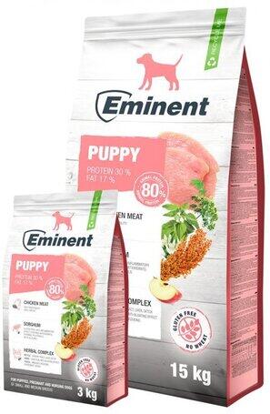 30kg Eminent Puppy 30/17 teljes értékű kutyatáp kis- és közepes testű kölyökkutyáknak, vemhes és szoptató szukáknak. A kis- és közepes testű kutyafajták gyorsabban válnak felnőtté, mint a nagytestű kutyák. Ez a gyors növekedés magasabb tápszükséglettel jár, melyet elsősorban a magasabb fehérje és zsír (csúcsminőségű baromfizsír és kókuszolaj) tartalommal vala