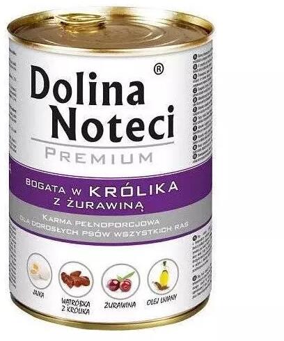 Dolina Noteci Prémium nyúl áfonyával 400g - Leírás Teljes értékű eledel nyúllal és áfonyával minden fajta felnőtt kutyának, különösen értékes forrása a lizin és fenilalanin aminosavaknak. Ezenkívül a nyúlhús magas lizintartalma növeli az esszenciális aminosavak tartalmát, ami nagyon jelentős hatással van a szervezet legtöbb folyamatára. Ezenkívül a szelén- és v