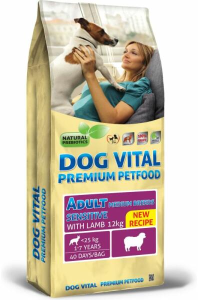 Adult Sensitive Medium Breeds Lamb Teljes értékű kiegyensúlyozott eledel bárányhússal, érzékeny emésztésű, válogatós közepes testű felnőtt kutyák részére. A Dog Vital Adult Sensitive Medium Breeds Lamb bárányhúst és rizst tartalmaz, mely összetevők különösen az érzékeny emésztésű vagy allergiás megbetegedésre hajlamos kutyák etetésére alkalmasak. A szemcsemé