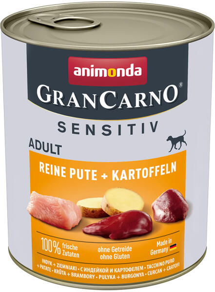 A zooplus. hu kínálatából: Ha biztos szeretne lenni abban, hogy kutyája nedveseledele csak bizonyos húsfajtákat tartalmaz, az animonda GranCarno Adult Sensitive 24 x 800 g tökéletes választás. Az egyféle fehérjét tartalmazó, single protein receptúra egyetlen állati eredetű forrásból származó értékes fehérjékkel látja el kedvencét. Az animonda GranCarno Adult Sensitive 2