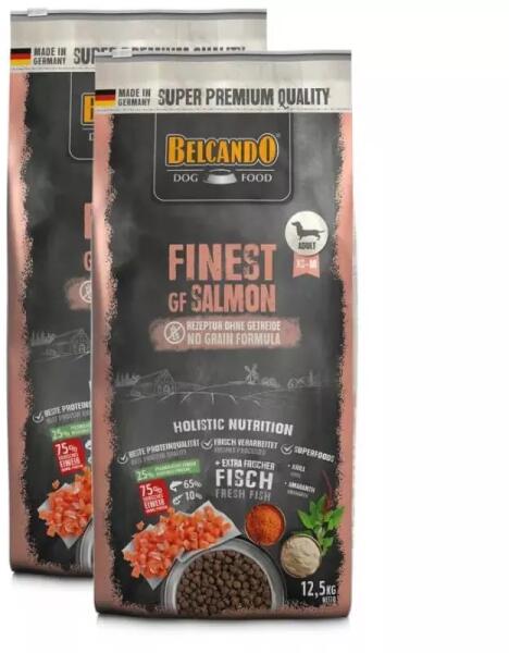 Finest Grain Free Lazac 12,5kg Ajánlott kis- és közepes testű fajták válogatós, kifejlett kutyáinak, akik érzékenyek a gabonára és a szárazföldi melegvérű emlős állatokból vagy madarakból származó fehérjékre. Különleges összetétel, különleges esetekhez. Mivel kizárólag állati fehérjeforrásként a hal került felhasználásra , ezért ez a gabonamentes receptúra
